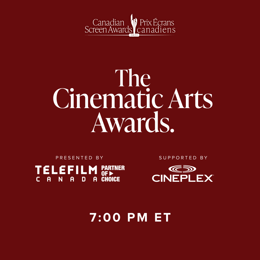 Back to Events The Cinematic Arts Awards, Presented by Telefilm Canada and Supported by Cineplex Date Thursday, April 13, 2023 Time 7:00 PM ET Location Meridian Hall, Toronto ON The Cinematic Arts Awards, Presented by Telefilm Canada and Supported by Cineplex